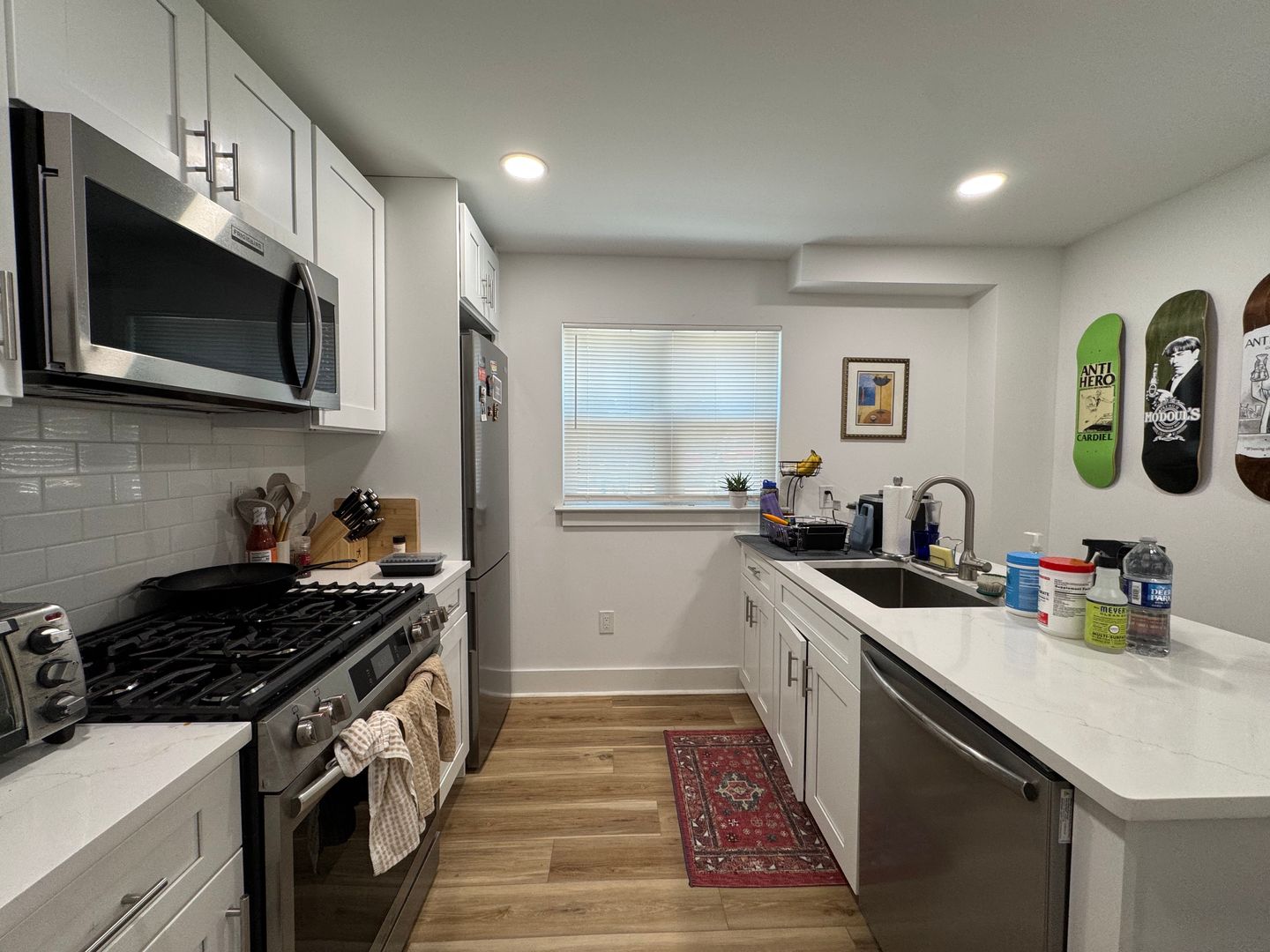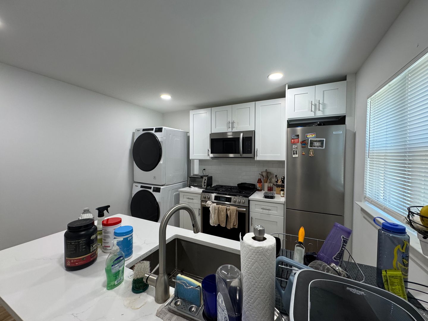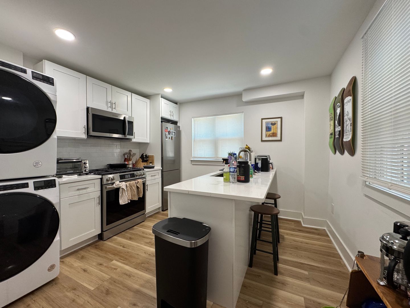 Charming first-floor one-bedroom tucked at the rear of the building with a private entrance. This fully renovated apartment features an eat-in kitchen with brand-new finishes, in-unit laundry, and a full bathroom with a soaking tub.